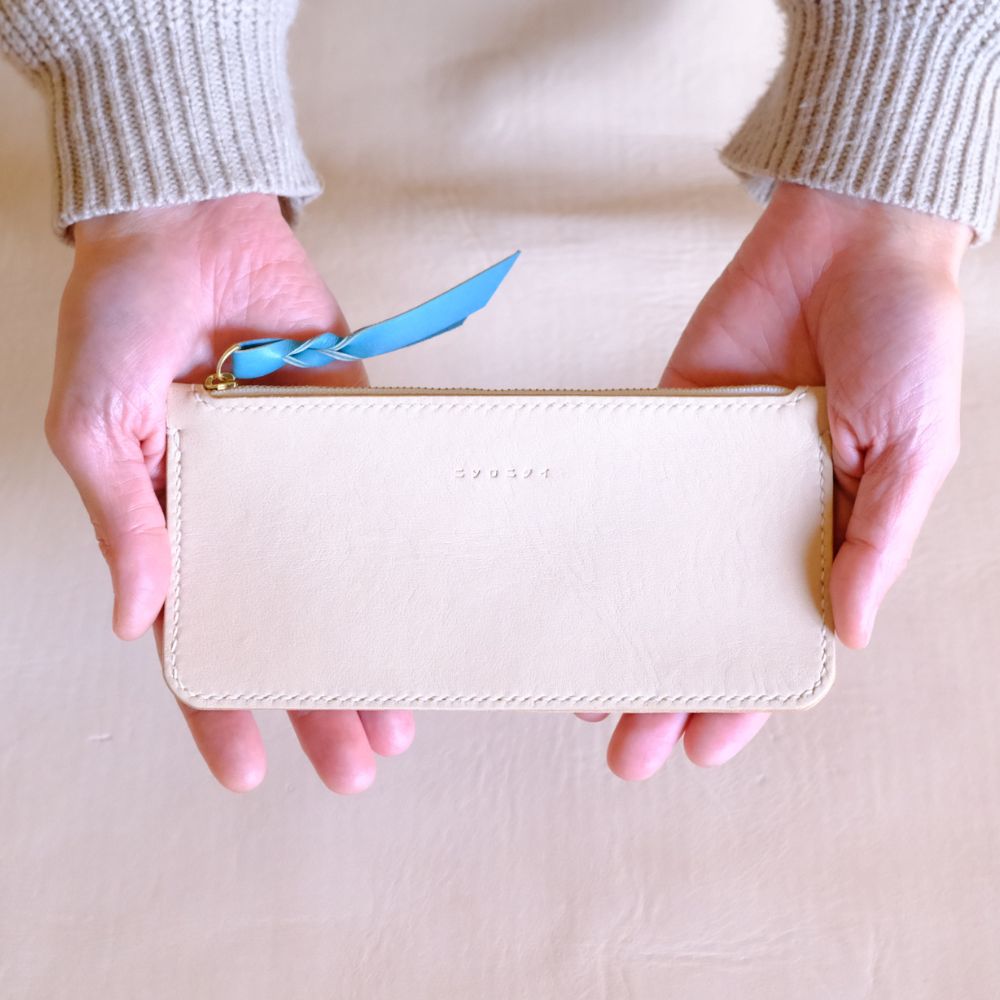 ヌメ革のミニジップウォレット ブルーグリーン[F4570]
