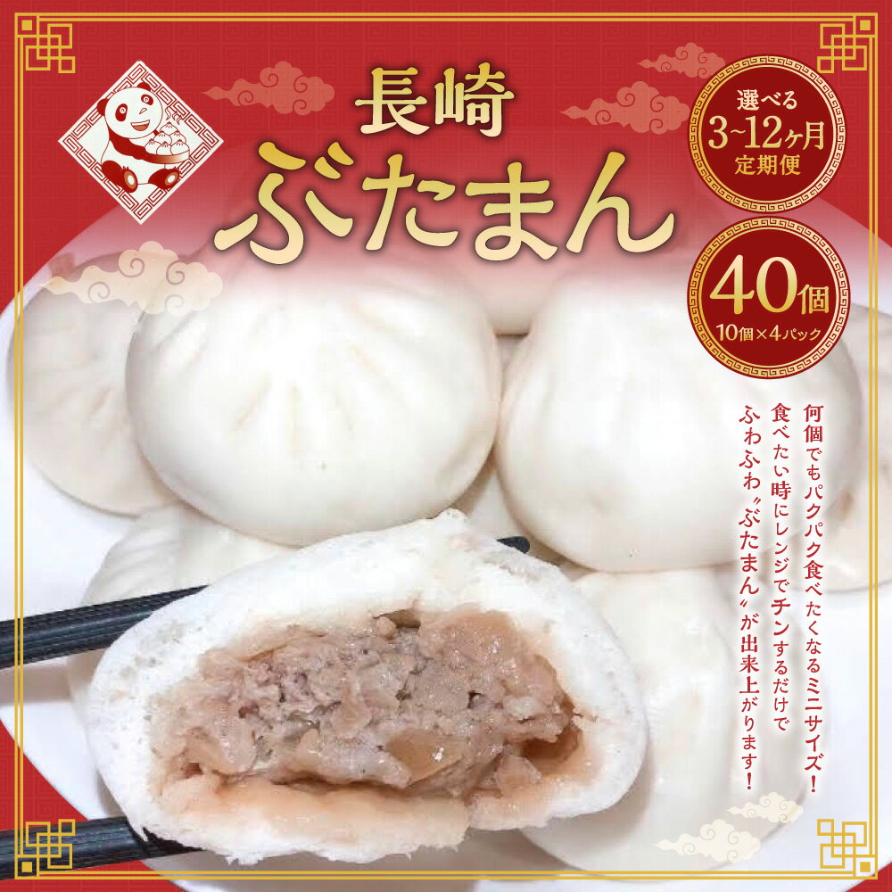- 【ふるさと納税】定期便 長崎ぶたまん 40個 選べる回数 ( 3回 / 6回 / 12回 ) | 白家園 バイジャエン ミニサイズ ぶたまん 豚まん ブタまん 中華まん 肉まん 国産豚 おやつ 朝食 軽食 レンジ 冷凍 定期便 長崎 中華 冷凍 九州 長崎県 長崎市 送料無料
