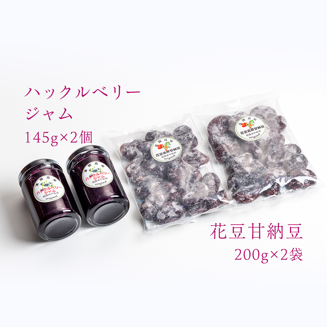 - 【群馬県優良県産品】浅間高原 ハックルベリー ジャム と 浅間高原 花豆 の 甘納豆 の 詰め合わせ ジャム 花豆 群馬 甘納豆 あやめ亭 群馬 贈答 贈り物 ギフト お中元 お歳暮 [AE003tu]
