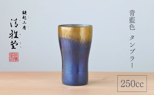 <冷たい口当たり>銅製 青藍色 タンブラー(250ml) 新潟県 弥彦村 ビール 手作り_鎚起銅器 酒器 手作り コップ ビールグラス ビアグラス 贈答品 プレゼント 還暦祝い 金属製 おしゃれ【1259235】