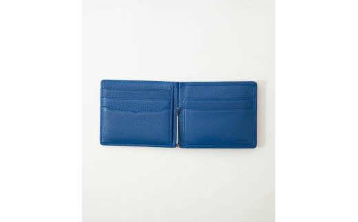 キプリス本革製札ばさみ 外ボックス小銭入れ付きマネークリップ カラー:ブルー【革小物 革製品 ソフトシュリンクレザー 牛革 しっとり シーズンレス 職人 財布】