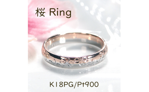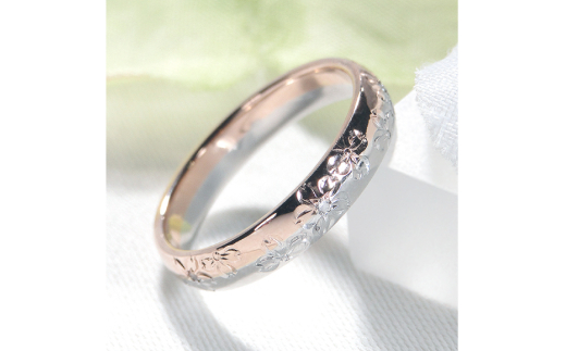 指輪 桜 手彫り彫刻 ピンクゴールド 5~16号 プラチナ K18PG PT900 コンビリング ダイヤ 0.03ct 18金 和柄 花びら 無垢 甲丸【277-pgpt】 [株式会社オーダーメイドジュエリーメイ 山梨県 韮崎市 20742668-p] リング アクセサリー 指輪 ジュエリー アクセ ファッションリング