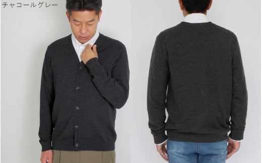 Vネックカーディガン カシミヤ 100% ( チャコールグレー・M ) メンズ 日本製 | ニット Vネック カーディガン 薄手 無地 おしゃれ シンプル 長袖 秋冬 冬 新潟県 五泉市 高橋ニット株式会社