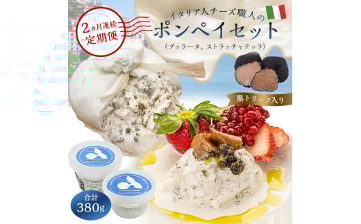 - 【定期便】ポンペイセット 2種(ブッラータ(黒トリュフ入り) Burrata al Tartufo 180g、ストラッチャテッラ(黒トリュフ入り) Stracciatella al Tartufo 200g)(2カ月連続お届け)【岐阜県 可児市 チーズ ナチュラルチーズ フレッシュ 濃厚 ミルク お取り寄せ グルメ 乳製品】