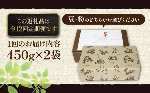 - 【豆でお届け】【全12回定期便】【ギフト用】極上 アイス ブレンド コーヒー 450g×2 ( 深煎り )《豊前市》【稲垣珈琲】珈琲 コーヒー 豆 粉 [VAS190]
