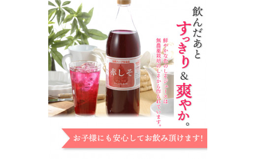 赤しそジュース 加糖タイプ 900ml×3本 大分 赤しそ ジュース シロップ 無農薬 すっきり さわやか ポリフェノール 常温 健康 F10037