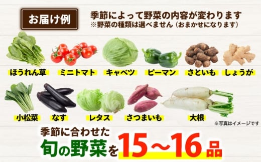 - 合志の旬のお野菜セット 15〜16品【一般社団法人クラッシーノこうし】野菜 旬 季節 詰合せ 国産 合志市 おまかせ 詰め合わせ 産地 直送 春野菜 夏野菜 秋野菜 冷蔵 根菜 果物 葉物 産地直送 合志 熊本県 熊本 くまもと セット お野菜 ほうれん草 小松菜 ミニトマト さといも さつまいも なす ピーマン しょうが 大根 レタス キャベツ [AYAB112]