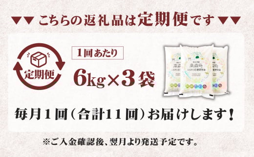 - 【1ヶ月毎11回定期便】阿蘇だわら 18kg(6kg×3袋)