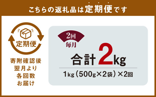 【2ヶ月定期便】 九州産豚 タレ漬け 合計1kg 500g×2袋 ×2回 総計2kg 豚肉 小間切れ コマ切れ 肉 タレ 冷凍 豚 小分け 簡単調理 国産 九州産 定期便 2回 熊本県 水俣市