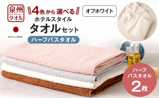 <選べるカラー> 泉州タオル ホテルスタイル タオルセット | ハーフバスタオル 2枚 (オフホワイト) タオル バスタオル ハーフ スリム ホテル仕様 2枚セット セット 選べる カラー 色 綿100% 蛍光剤不使用 敏感肌 日本製 日用品