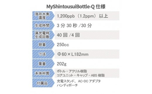 充電式高濃度水素水生成器「MyShinTouSuiBtoole-Q」1台 | 水素水 高濃度水素 水素 生成 ボトル メーカー リフレッシュ 美容 水分補給 リカバリー スポーツ オフィス 自宅 アウトドア 携帯型 プレゼント ギフト ふるさと 納税 栃木県 矢板市