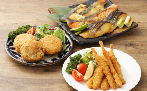- 磯鷸之庄 熊本県産 あか牛メンチカツ 計約1.2kg (約100g×12個入) ・ 魚の西京漬け 計6切 (3種×各2切入) ・ エビフライ (12本入) のギフトセット あか牛 メンチカツ ミンチカツ 西京漬け 西京漬 漬け えびフライ 海老フライ 揚げ物 冷凍