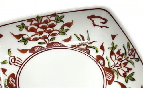 - 有田焼 赤絵万暦 角皿 S 12cm 24to3【西富陶磁器オリジナル】食器 器 うつわ 和食器 皿 小皿 取皿 角皿 プレート お祝い ハレの日 手描き 赤 A15-378