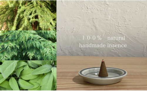 自然素材100% お香セット コーンタイプ(杉・檜・セージ)各10個 & 有田焼台皿【ARITAYAKI-STORE】有田焼 お香 お香立て 香皿 セット リラックス 癒し 瞑想 天然原料 ハンドメイド A15-357