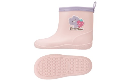 - ワッペン 付き レインブーツ【16cm】 長靴 キッズ 子供 おしゃれ かわいい スケーター skater Sweet Bear クマ くま ピンク いちご【反射テープ付き ながぐつ 雨具 雨の日】 奈良県 奈良市 なら 5-108