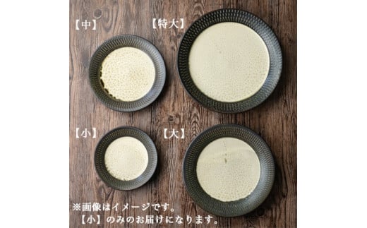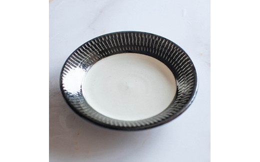 - AA32 小石原焼 カネハ窯 飛び鉋プレート【小】(黒×白ツヤ)