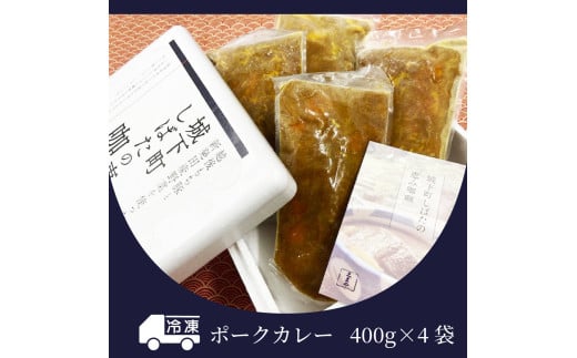 - ポークカレー 4食 計1.6kg 冷凍 カレー 国産 豚肉 400g 越後もち豚 野菜 地元 簡単 贈答 レトルト レトルトカレー 非常食 保存食 備蓄 時短 城下町しばたの恵み咖喱パック 志まや 割烹 新発田市 新潟 J33