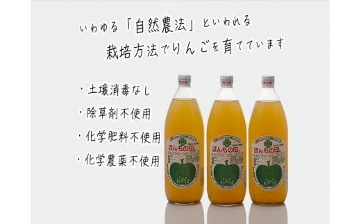若葉農園 ほんもの印のりんごジュース 1L×3本 青森県産りんごジュース
