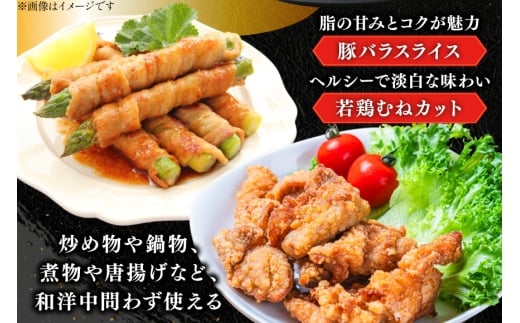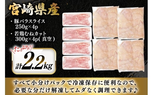 豚肉 鶏肉 詰め合わせ 宮崎県産 豚バラ スライス & 若鶏むね 切り身 計2.2kg [YAMATO 宮崎県 日向市 452061447] バラ肉 胸肉 むね肉 小分け 真空パック 冷凍