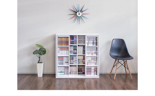 - 【完成品】スライド本棚 ダブル ホワイトオーク AKU100660203