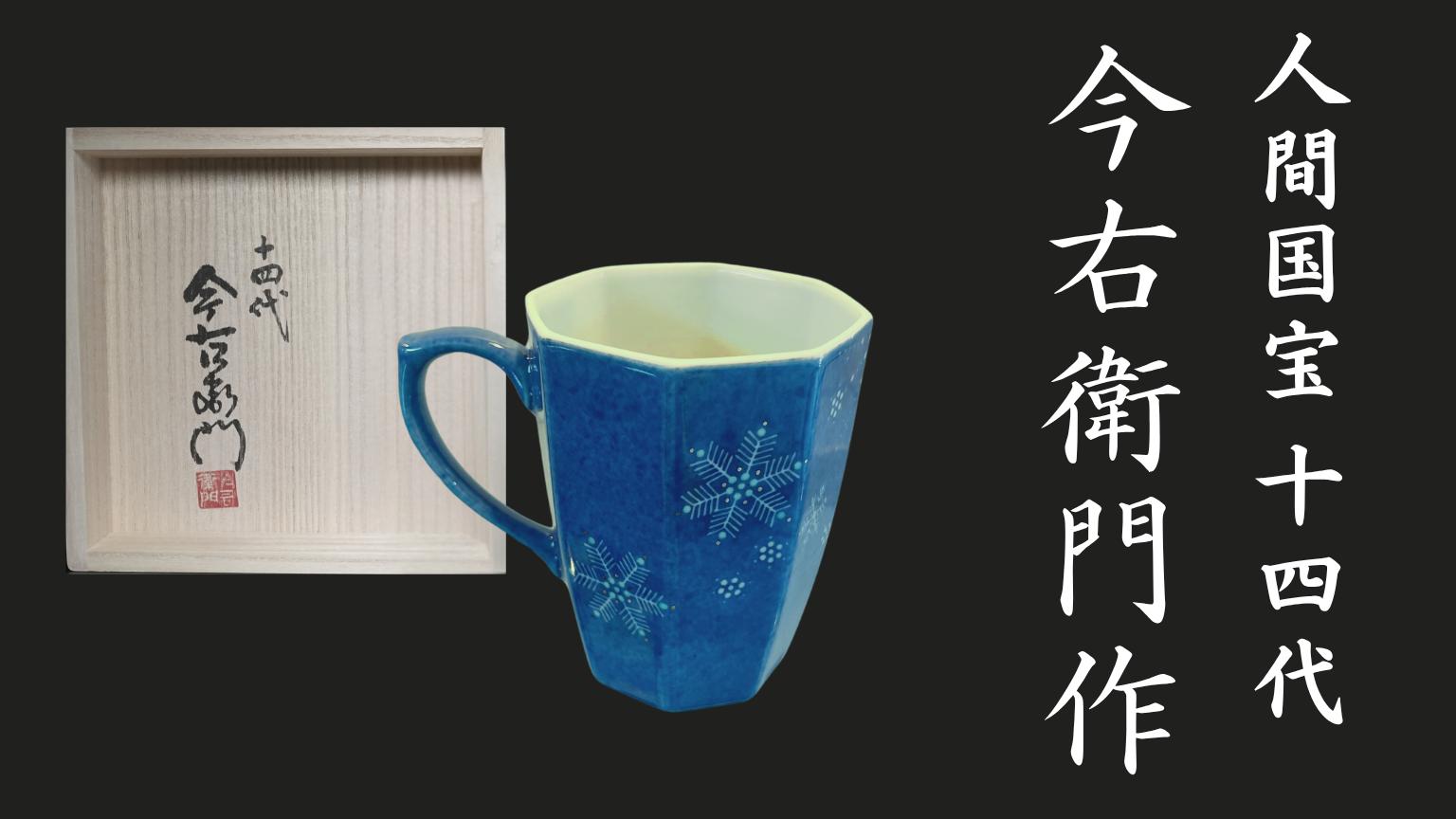 - 【有田焼】人間国宝 14代今右衛門作 色絵 墨はじき 雪文碗(マグカップ)【本人作】