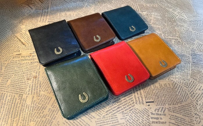 - 【選べるカラー】蹄鉄付き ハーフウォレット/ 競馬 馬 競走馬 本革 革小物 財布 ハンドメイド レザー 雑貨 日用品 ウマ 馬グッズ 競馬グッズ レザークラフト 牛革 ファッション / 栗東市 / 株式会社ブルズエフ [BIAU081]