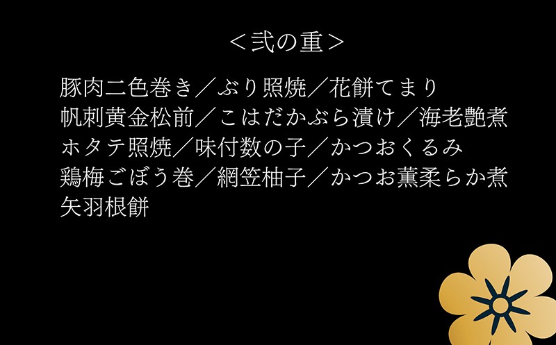 【12月25日受付終了】おせち「板前魂の朱雀」和洋中華風 三段重 49品 5人前 特大 8.5寸 豚角煮&焼売4種&鮑&餃子2種&たこちまき 付き【年内発送】