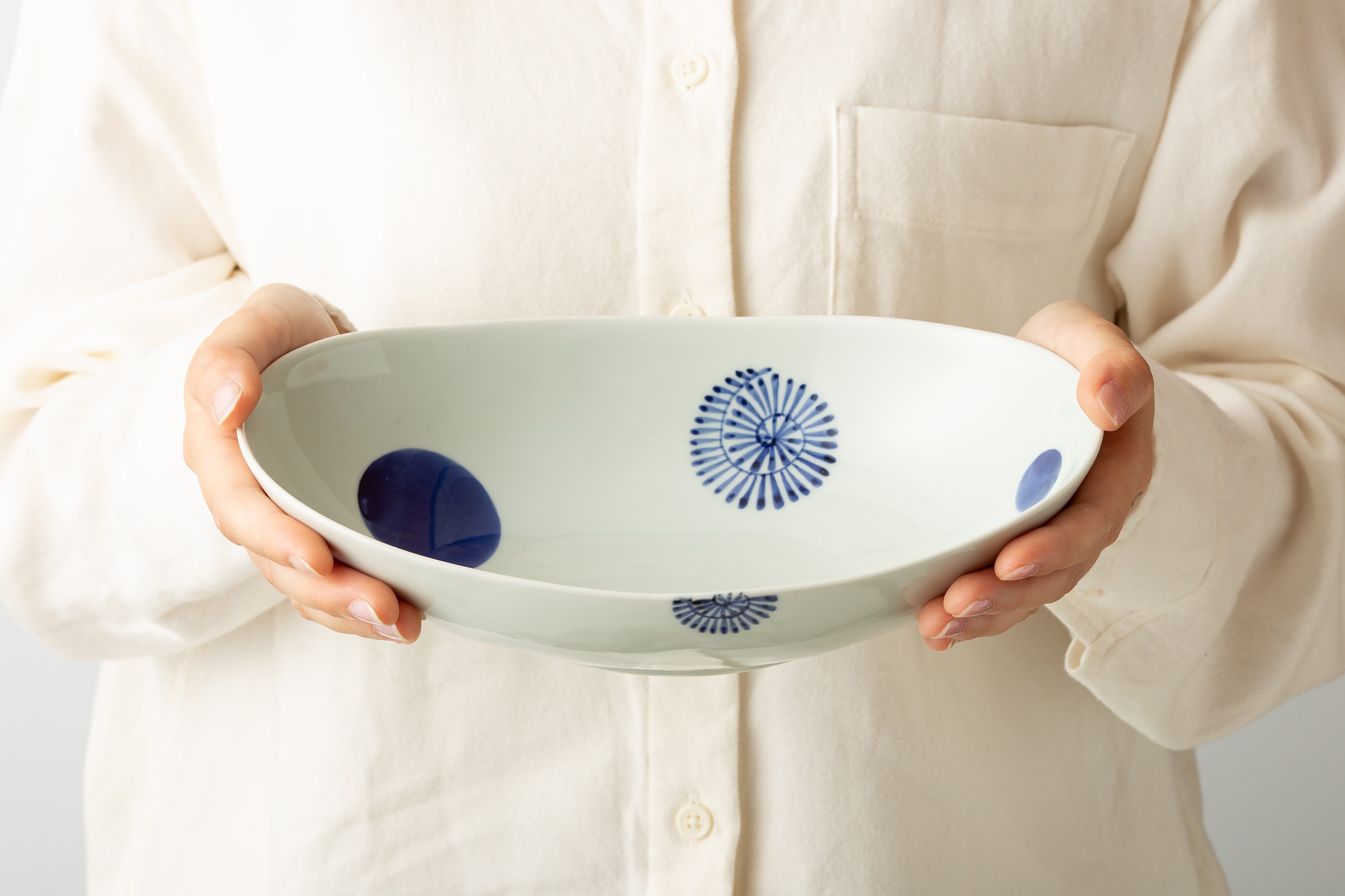 - 【セット】カネアオ 有田焼 染付丸紋蛸唐草 楕円ボウル 大小3個セット そうた窯