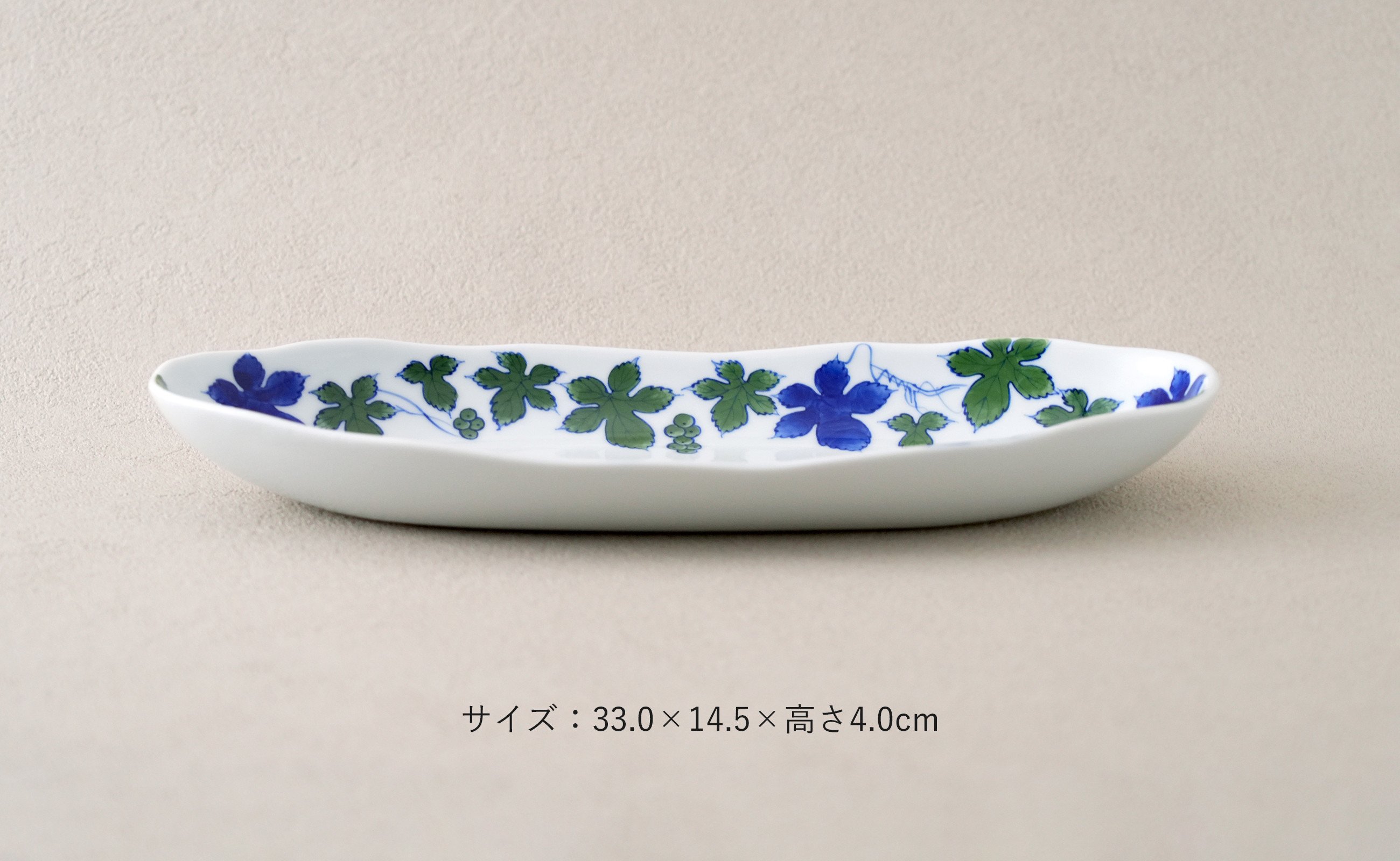 - 有田焼 染付 楕円皿 つたぶどう柄 1枚【やきものの里】食器 器 うつわ 電子レンジ対応 磁器 カレー皿 パスタ皿 A13-2