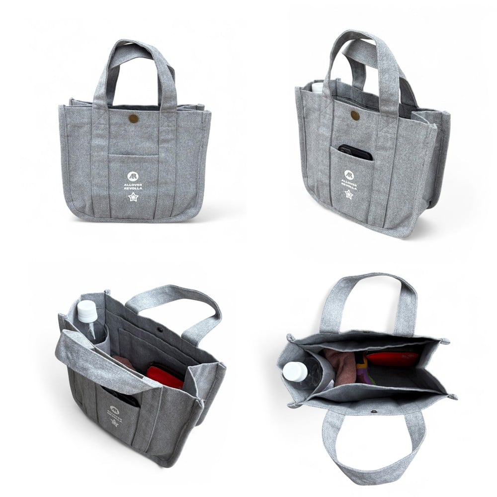 - 005-132 【ブラック】水筒が倒れない仕切り帆布ミニトートバッグ バッグ カバン ファッション 水筒が倒れない仕切り帆布 ミニトートバッグ アウトドア おしゃれ 静岡県 牧之原市 REVOLLA
