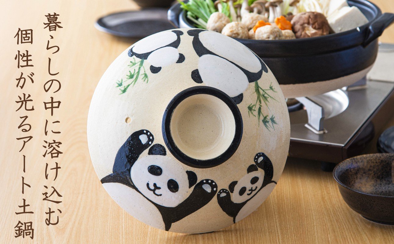 【萬古焼】暮らしの美術品 絵付けアーティストの個性が光るHandmade土鍋。絵付けART工房・平尾製陶 土鍋「なかよしパンダ」【萬古焼、手描き、土鍋、ハンドメイド、アート、デザイン、鍋、 家庭用、4人用、4人前、家族、冬、煮込み、手芸、工芸、三重県、四日市市、ふるさと納税】