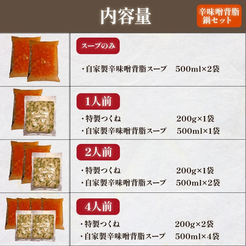 - 元お相撲さんがつくる 辛味噌背脂鍋 セット 特製 つくね 自家製 辛味噌 背脂 スープ 選べる容量 スープのみ 1人前 2人前 4人前 鶏 鶏肉 とり とりにく 肉 お肉 にく 鍋セット 鍋つゆ 簡単 調理 簡単調理 冷凍 小分け お手軽 夕ご飯 家庭 家庭用 パーティ 宴会 出汁 ダシ だし 相撲 人気 おすすめ ふるさと納税 京都 八幡 八幡市 麺屋 楽食酒 礎