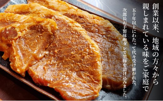【お歳暮ギフト】鹿児島県産 焼肉次郎長 厚切り黒豚の味噌漬け 約800g 豚 お肉 黒豚 ロース 豚ロース 冷凍 特製 味噌ダレ バーベキュー BBQ ギフト おかず 南さつま市 お歳暮 のし対応 熨斗
