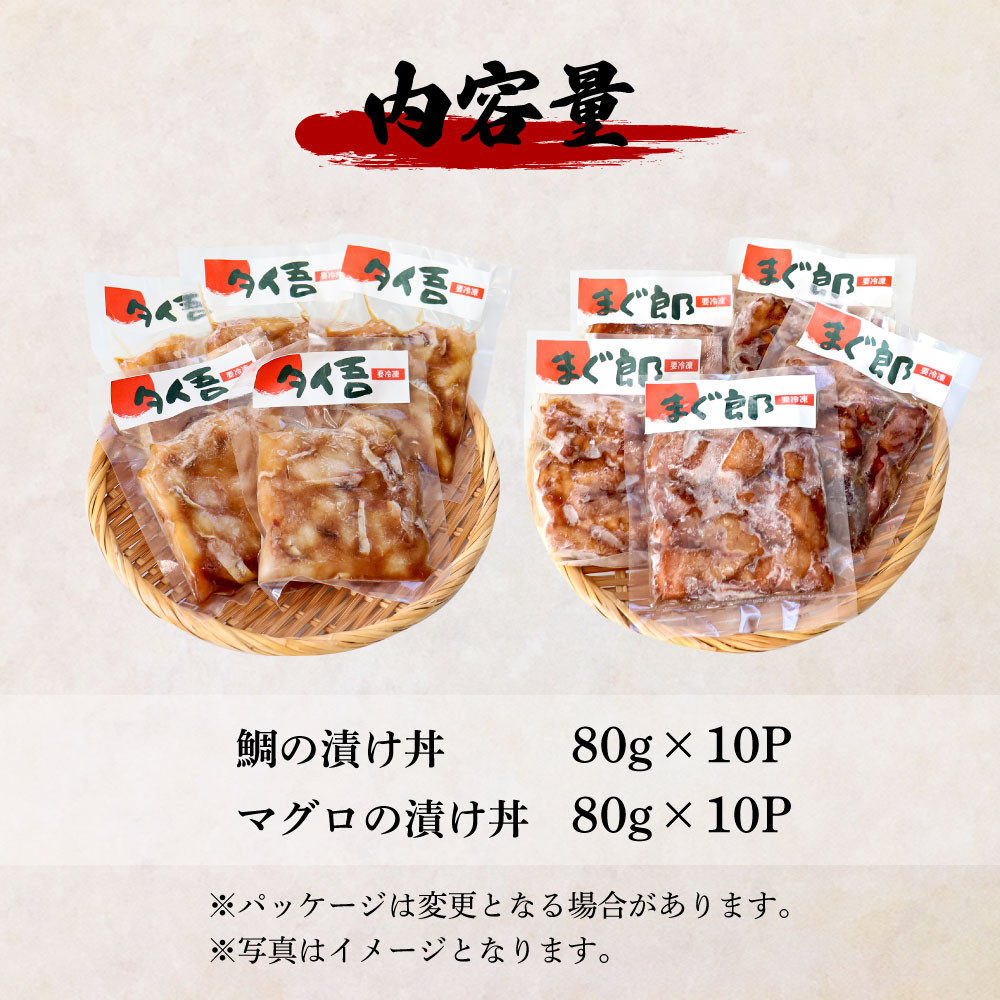 訳あり 鯛の漬け丼&マグロの漬け丼 各10P 計20P タイ たい まぐろ 鮪 海鮮丼 漬け丼 魚 魚介 海鮮丼 海鮮 惣菜 おかず 真空パック 個包装 小分け 訳アリ ~四国一小さなまち~