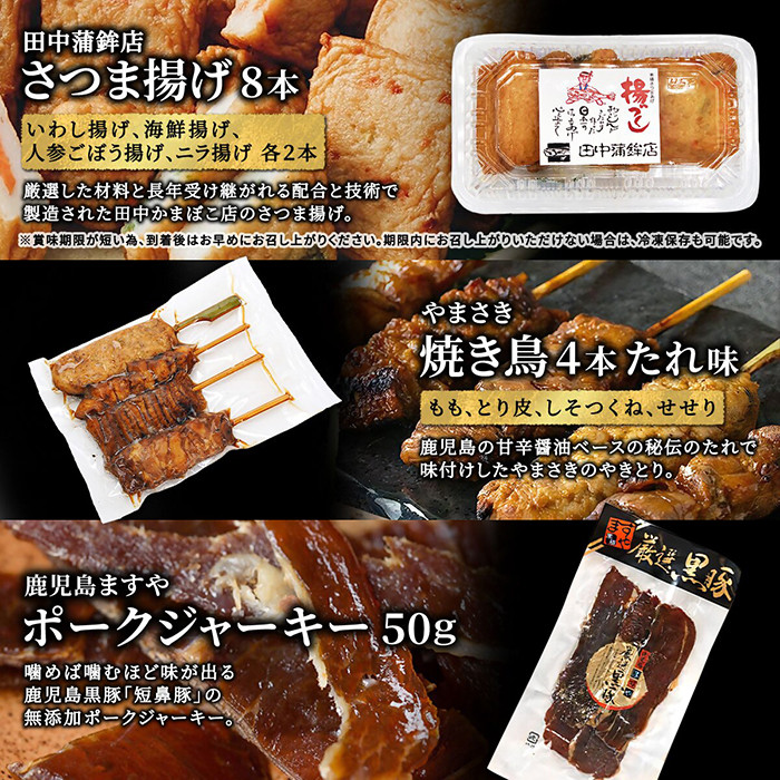 - a980 《先行予約受付中!12月発送予定》姶良市特産品詰め合わせセット(合計3種・さつま揚げ・焼き鳥・ポークジャーキー)【姶良市特産品協会】姶良市 鹿児島 さつま揚げ 薩摩揚げ やきとり 焼き鳥 焼鳥 ジャーキー 惣菜 総菜 詰合せ セット つまみ 特産