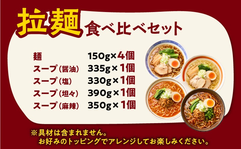 暖気家 拉麺食べ比べセット 4食(醤油、塩、坦々、麻辣 各1食) K036-019