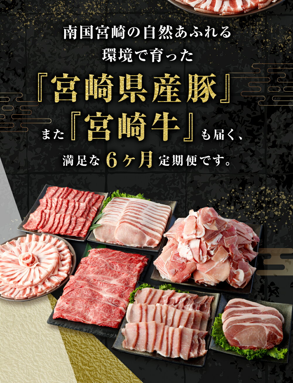 【ふるさと納税】<ミヤチク 宮崎県豚・宮崎牛6ヶ月定期便>お申込みの翌月下旬頃に第一回目発送(12月は中旬頃) 合計13.2kg 焼肉 しゃぶしゃぶ 豚カツ とんかつ 生姜焼き 和牛 牛肉 豚肉 豚 肉 宮崎県 高鍋町 送料無料 冷凍 新生活応援 卒業祝い 就職祝い