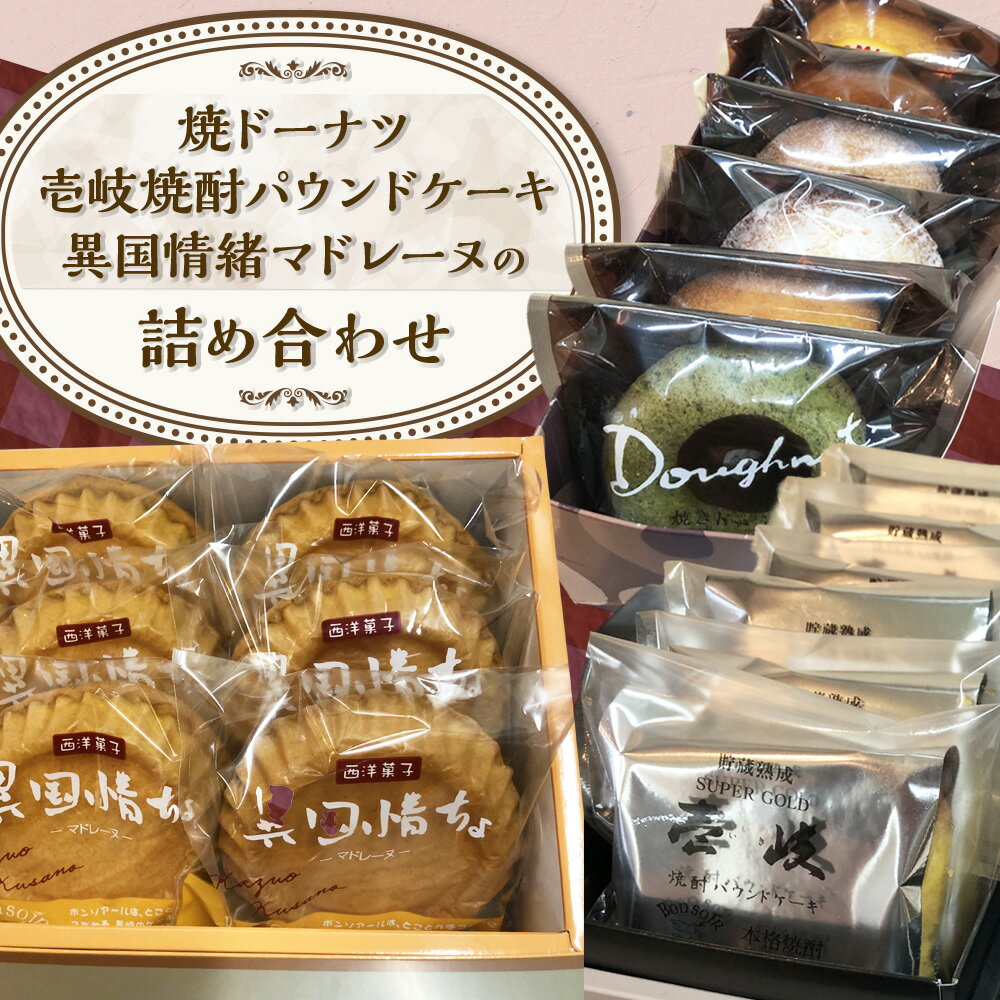 - 【ふるさと納税】【7営業日以内発送】焼ドーナツ 異国情緒マドレーヌ 壱岐焼酎パウンドケーキの詰め合わせ セット スイーツ ケーキ ドーナツ マドレーヌ パウンドケーキ お菓子 洋菓子 焼き菓子 おやつ 長崎県 長崎市 送料無料