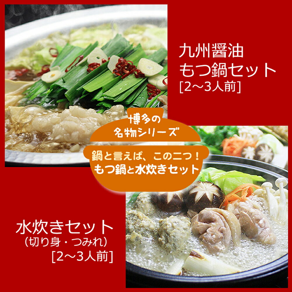 - 【ふるさと納税】 レビューキャンペーン 数量限定 おどろきっちん もつ鍋(醤油)&水炊き(切り身)セット 4〜6人前 国産牛小腸 福岡 博多 送料無料