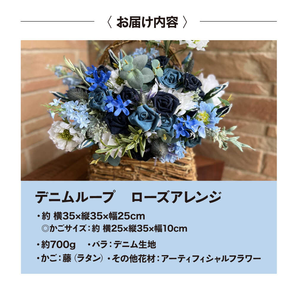 【ふるさと納税】インテリア デニムローズアレンジ インテリア 雑貨 デニム バラ 薔薇 花 アレンジメント フラワー 贈り物 ギフト おすすめ 人気 プリザーブドフラワー 造花 おしゃれ かわいい 青いバラ 置物 プレゼント お祝い 広島県福山市/株式会社四川[BADK019]