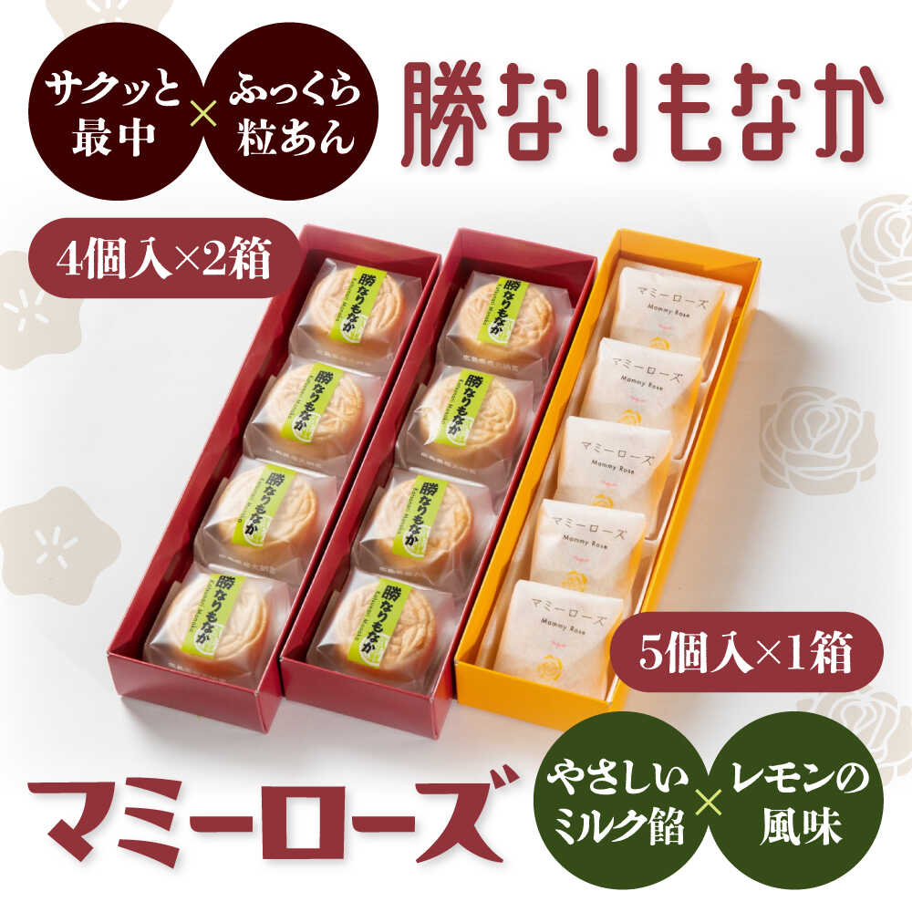 - 【ふるさと納税】和菓子 「マミーローズ」5個入り1箱&「勝なりもなか」4個入り2箱 (計3箱セット) おすすめ 人気 詰め合わせ 食べ比べ 手土産 ギフト 贈り物 お茶請け 銘菓 バラ 薔薇 まんじゅう もなか 菓子 洋菓子 個包装 広島県福山市/株式会社三河屋[BADJ006]