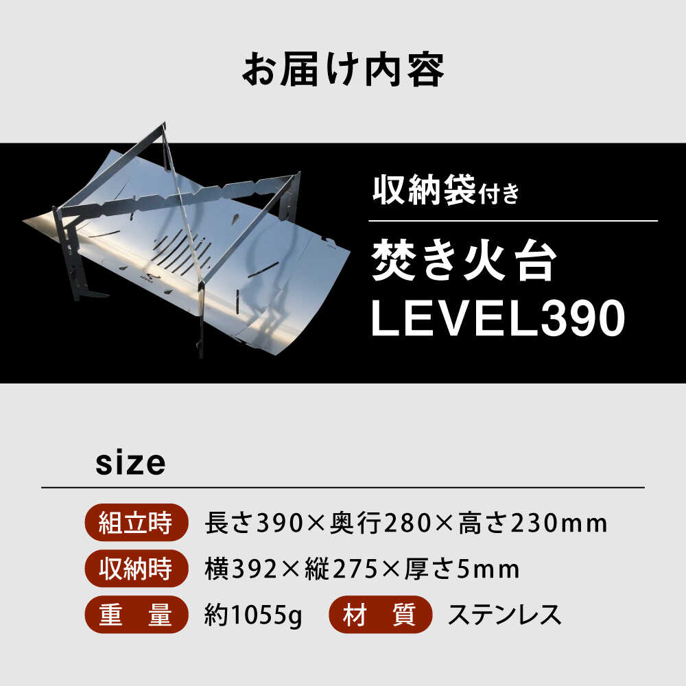 【ふるさと納税】《IPPOPRODUCTS》焚き火台 LEVEL390 アウトドア キャンプ キャンプ用品 焚き火台 ソロキャンプ ギフト 贈り物 おすすめ 人気 焚火台 BBQ コンパクト 軽量 組み立て簡単 おしゃれ 日本製 ステンレス製 頑丈 広島県福山市/池田鉄工有限会社[BAEI004]