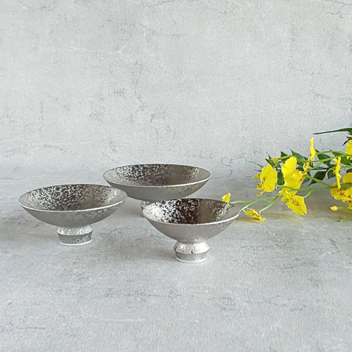 - 【ふるさと納税】有田焼 匠の蔵・至福の盃 大中小セット 銀彩【松尾陶器】食器 器 うつわ 酒器 晩酌 盃セット お祝い お正月 ハレの日 シルバー 華やか A60-115