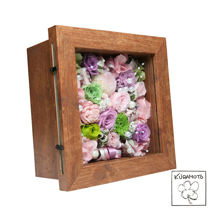 プリザーブドフラワー アレンジ ホワイトウッドフレーム ケース付き パープル インテリア 花