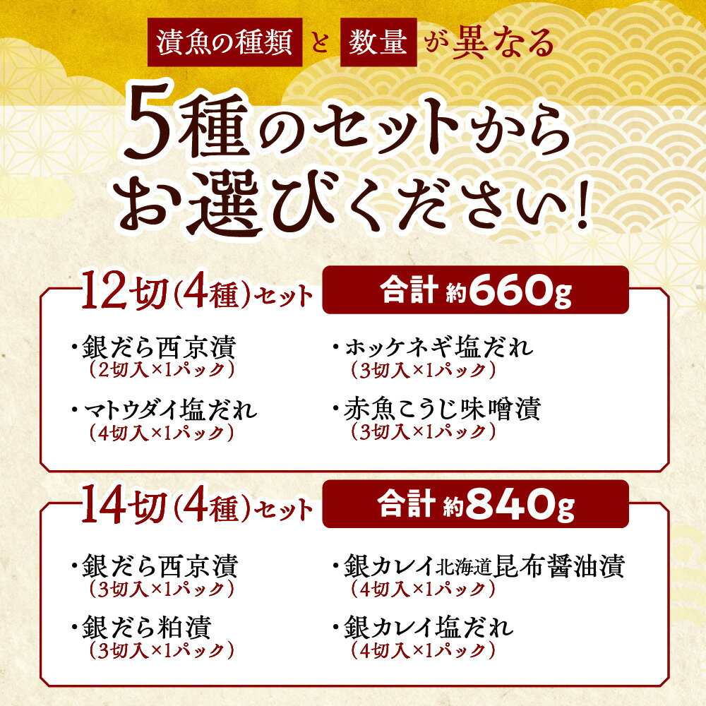 - 【ふるさと納税】 大容量 漬魚 【 選べる セット 】 12切 14切 31切 36切 44切 厳選 銀鱈 銀だら ソイ 銀カレイ シマホッケ 赤魚 マトウダイ 西京漬け 粕漬け 塩だれ 味噌漬け 昆布醤油漬け 詰め合わせ 切身 小分け 焼き魚 おかず 漬け魚 冷凍 魚 食べ比べ 北海道 札幌市