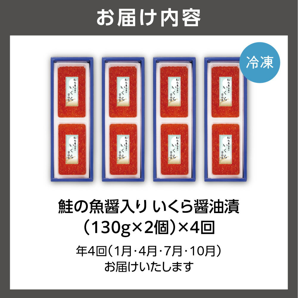 - 【ふるさと納税】【定期便4回】佐藤水産 鮭の魚醤入り いくら醤油漬 定期便 北海道産 いくら 醤油漬け 定期便 年4回 天然鮭 生筋子 鮭いくら 鮭卵 いくら定期便 260g 冷凍 発送 冷凍いくら 醤油漬け いくら丼 海鮮丼 おつまみ イクラ ikura 味付き 北海道 石狩市