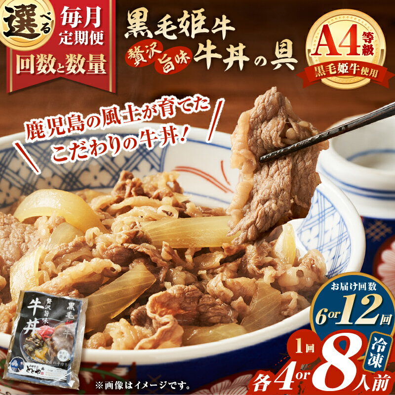 - 【ふるさと納税】<選べる回数と数量> 6回 or 12回 定期便 黒毛姫牛贅沢旨味 牛丼の具 4食分 or 8食分 肉 牛 牛丼 黒毛姫牛 丼 サシ 惣菜 おかず 定期 山田食堂ととや 鹿児島 鹿児島市 おすすめ ランキング プレゼント ギフト