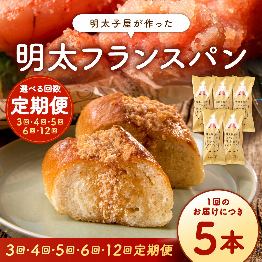 - 【ふるさと納税】【定期便】明太子屋が作った 明太フランスパン 5本セット 選べる定期回数 3ヶ月定期 / 4ヶ月定期 / 5ヶ月定期 / 6ヶ月定期 / 12ヶ月定期 約24cm パン フランスパン 明太子 めんたいこ 無着色 博多明太フランス 明太パン 冷凍 国産 福岡県北九州市