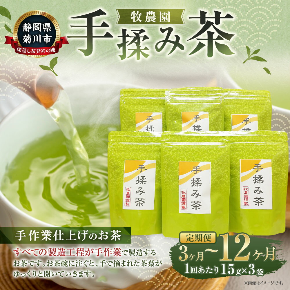 【ふるさと納税】【選べる定期便】手揉み茶 セット<定期便 3ヶ月 6ヶ月 12ヶ月>1回あたり 15g×3袋 計135g~計540g【緑茶 茶葉】静岡県産 手もみ茶 煎茶 お茶 緑茶 茶 日本茶 詰め合わせ お取り寄せ 静岡県 菊川市 送料無料