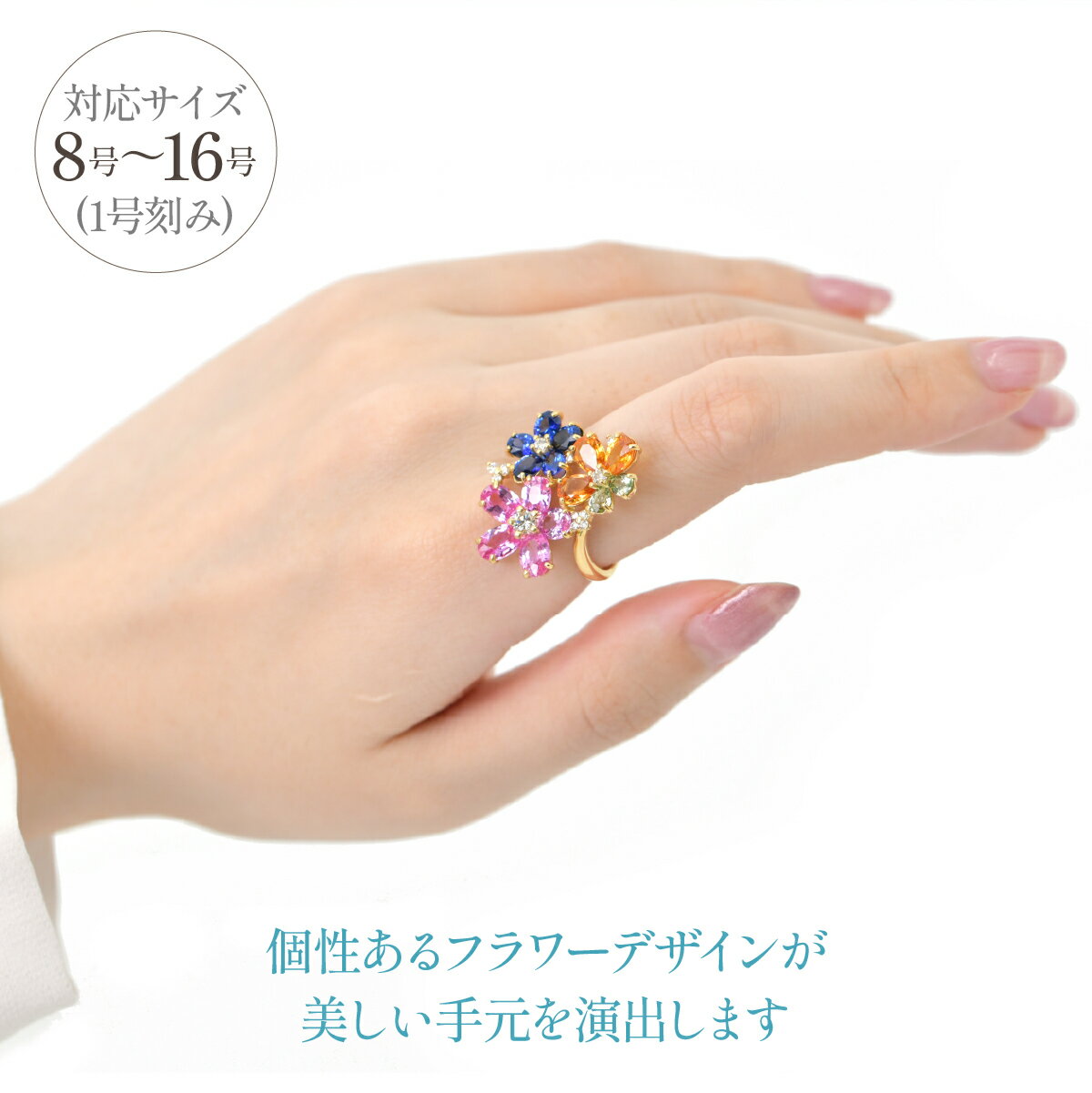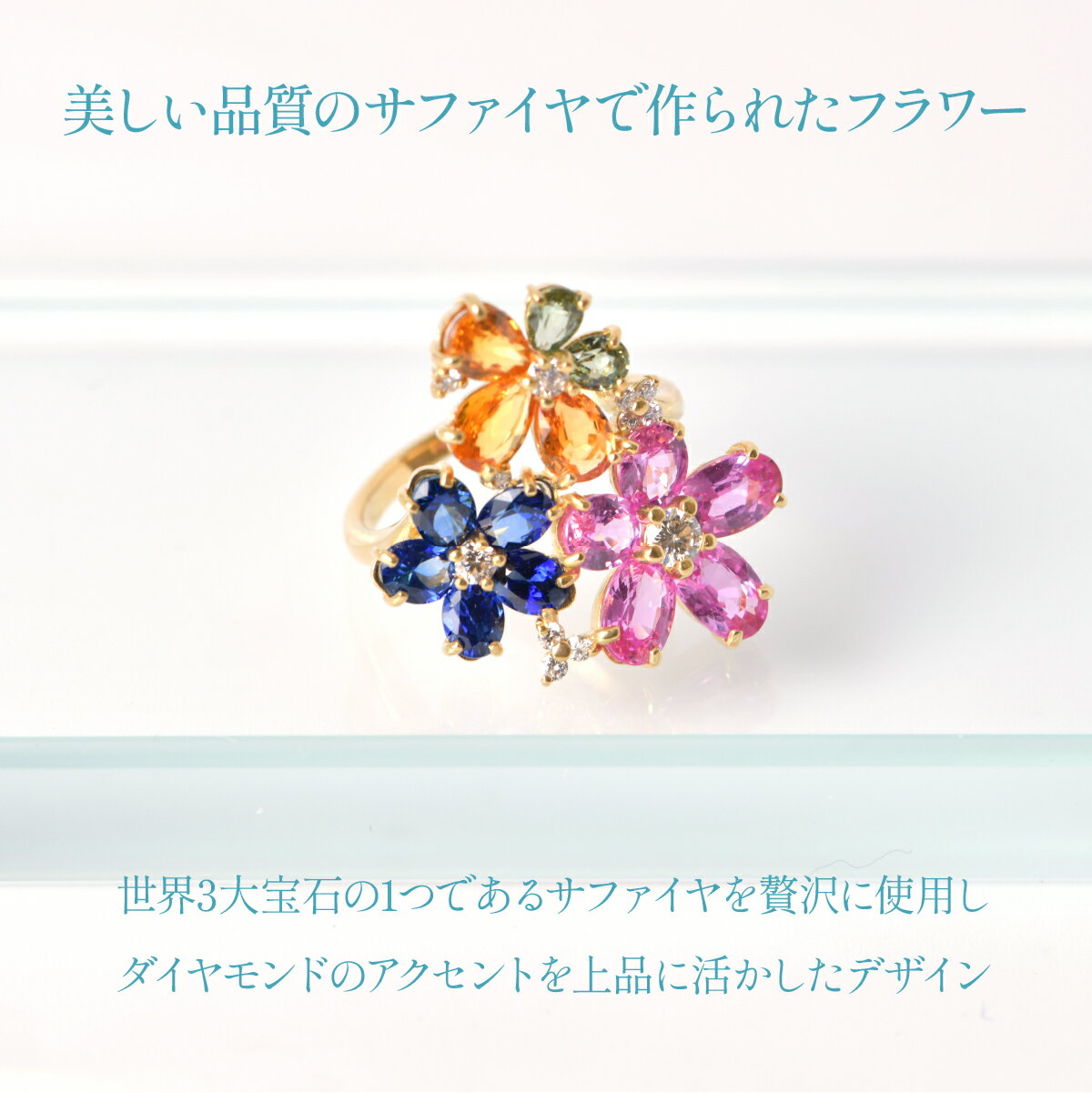 - 【ふるさと納税】K18 イエローゴールド マルチフラワーデザイン カラーサファイア リング 管理番号521039 ふるさと納税 人気 おすすめ ランキング アクセサリー リング 宝石 ジュエリー 高級 記念日 プレゼント 山梨県 笛吹市 送料無料 218-246